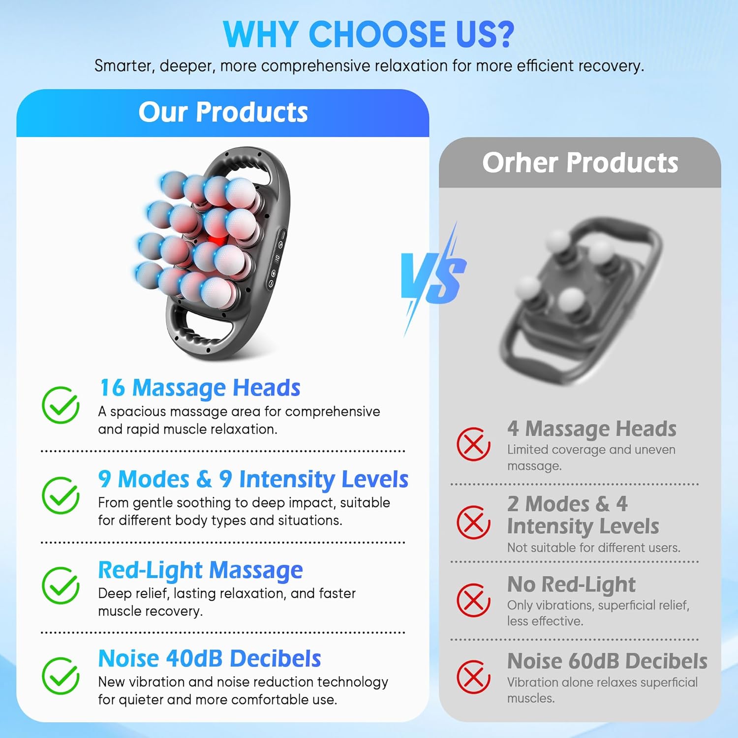 16-Head Massage Gun Set, Deep Tissue Massager with 9 Modes & Levels, Muscle Massager Pain Relief, Percussion Massage Gun for Back/Shoulders/Legs/Waists (Black, 16-Head)
