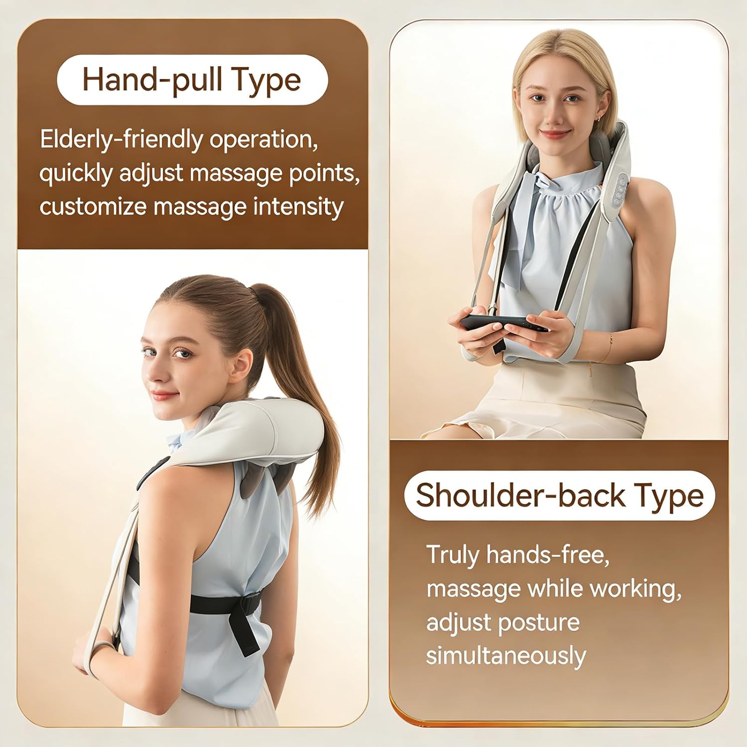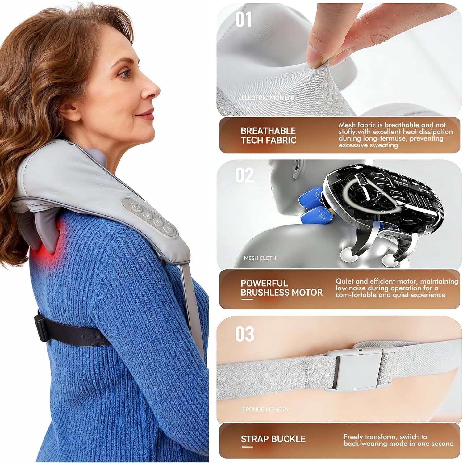 Professional Neck and Shoulder Massager with Heat & 6 Heads, 3-Speed Hands-Free Deep Tissue Percussion Massage Gun for Pain Relief