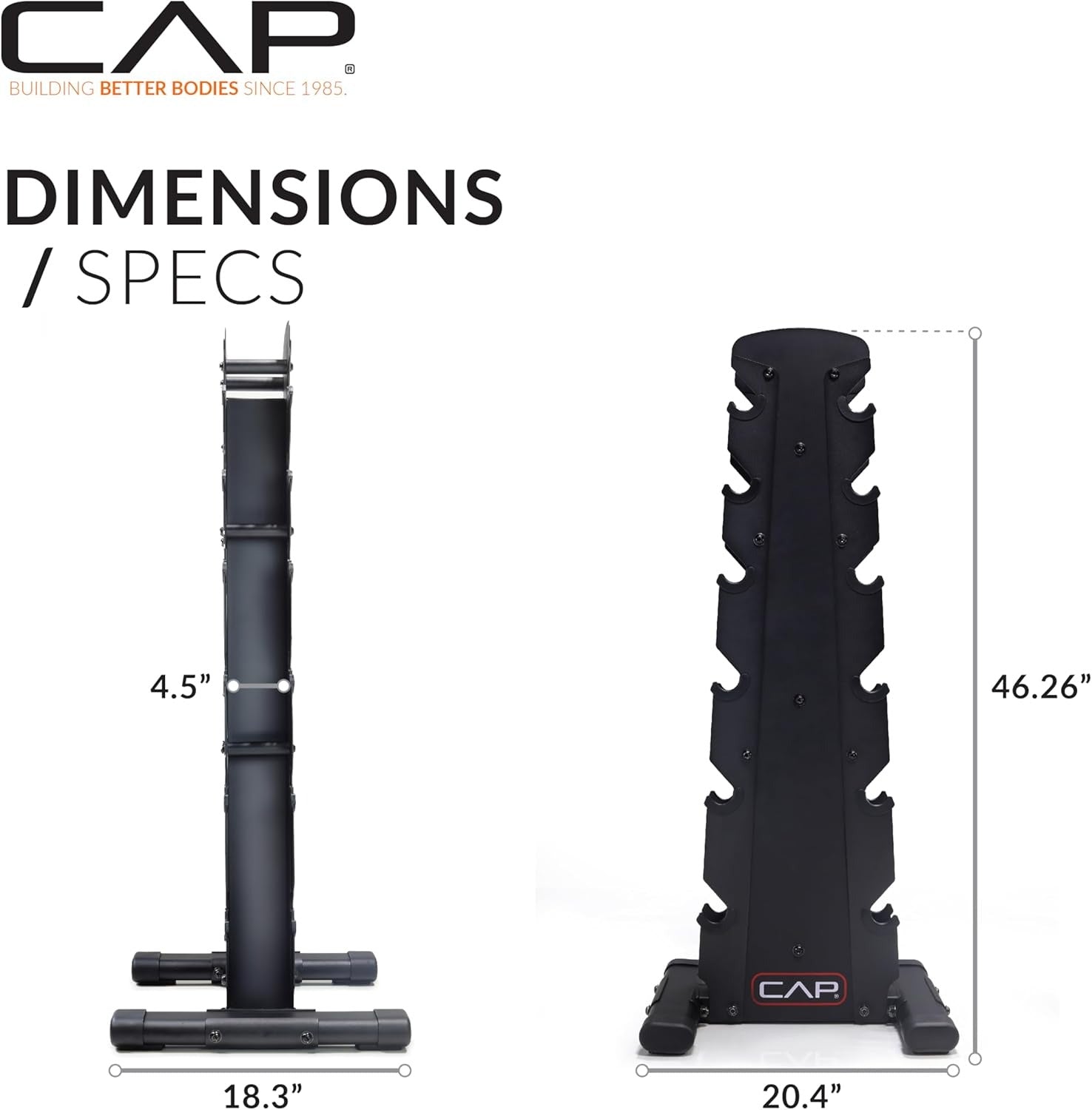 CAP Barbell Rubber Coated Dumbbell Weight Set with Vertical Rack | 100 lb, 150 lb, and 210 lb Options