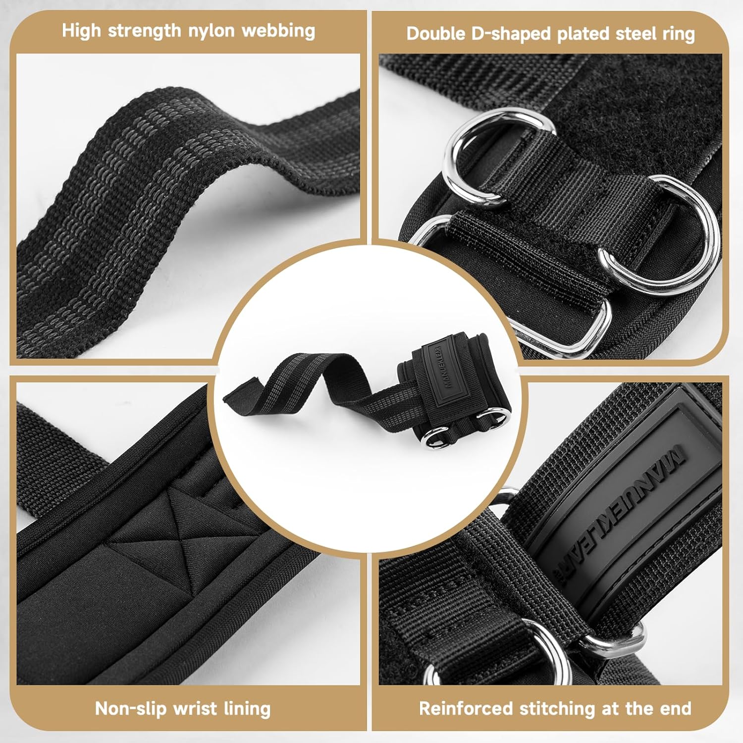 MANUEKLEAR Non-Slip Wrist Straps for Weightlifting Deadlifting, Gym Lifting Straps with D Rings for Cable Machine Workout, 10mm Neoprene Padded Weight lifting Wrist Wraps for Men Women